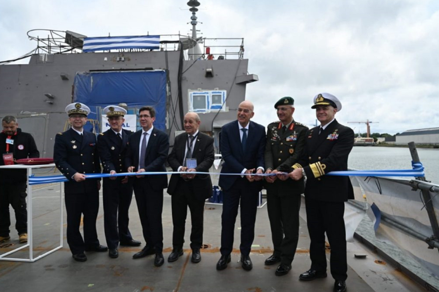 Ο υπουργός Εθνικής Άμυνας, Νίκος Δένδιας, παρέστη στην τελετή καθέλκυσης της φρεγάτας «Φορμίων» στις εγκαταστάσεις της Naval Group στη Λοριάν της Γαλλίας. Πρόκειται για την τρίτη φρεγάτα τύπου Belharra, που μαζί με τις «Κίμων» και «Νέαρχος» θα ενισχύσουν τις μονάδες επιφάνειας του στόλου.