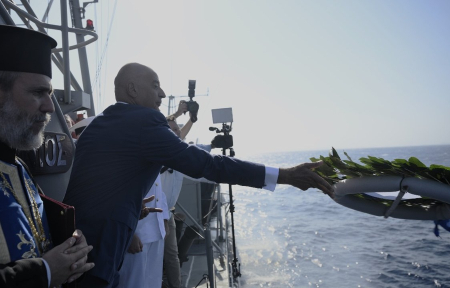 «Στο μνημόσυνο επί του περιπολικού σκάφους «Μυκονιός» στη θαλάσσια περιοχή της Τήνου & στην τελετή κατάθεσης στεφάνων στον υγρό τάφο πεσόντων του καταδρομικού «Έλλη», κατά τον τορπιλισμό στις 15/8/1940, με τον Αρχηγό του Πολεμικού Ναυτικού Αντιναύαρχο Δημήτριο Ε. Κατάρα ΠΝ. Είθε η μνήμη τους να είναι αιώνια!» έγραψε σε post του.