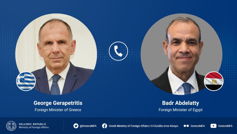 Ο Υπουργός Εξωτερικών Γιώργος Γεραπετρίτης είχε χθες τηλεφωνική επικοινωνία με τον Αιγύπτιο ομόλογό του, Μπαντρ Αμπντελάτι. Στο πλαίσιο της Στρατηγικής Συνεργασίας μεταξύ Ελλάδας και Αιγύπτου, συζήτησαν διμερή ζητήματα και αντάλλαξαν απόψεις για τις περιφερειακές εξελίξεις.