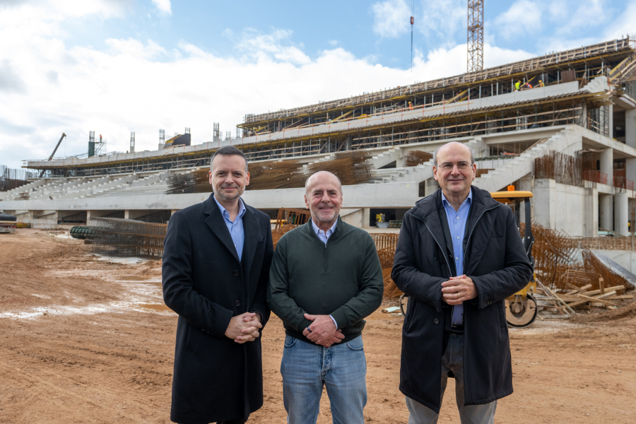 Το γήπεδο του Παναθηναϊκού είναι ένα τμήμα του σχεδίου μας για την περιοχή. Τώρα πια έχουμε περάσει στη φάση που αρχίζουμε να βλέπουμε τμήματα από το γήπεδο και ο στόχος παραμένει από το καλοκαίρι του 2027 ο Παναθηναϊκός να μπει επιτέλους στο καινούργιο, μεγάλο, σύγχρονο γήπεδό του. Η σκυταλοδρομία εξελίσσεται ομαλά μεταξύ των κυβερνήσεων και των δημοτικών αρχών της Αθήνας. Σ’ αυτό το πλαίσιο, είμαστε αποφασισμένοι να αντιμετωπίσουμε και τις καθυστερήσεις που υπάρχουν στα δύο συνοδά έργα. Χαίρομαι που προχωρεί το γήπεδο του Παναθηναϊκού εδώ στο Βοτανικό. Το δικαιούται ο Παναθηναϊκός. Οι άλλες δύο μεγάλες ομάδες της πρωτεύουσας έχουν ήδη τα δικά τους γήπεδα και υπάρχει ένας αντίστοιχος σχεδιασμός και για τη Θεσσαλονίκη.»