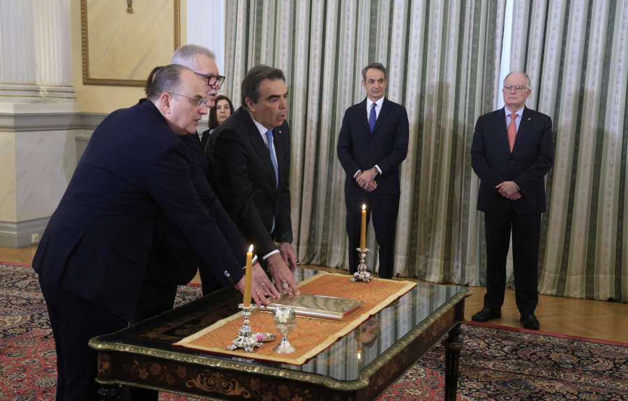 Σήμερα, πραγματοποιήθηκε η ορκωμοσία των νέων μελών της κυβέρνησης, του Μαργαρίτη Σχοινά στο υπουργείο Αγροτικής Ανάπτυξης και Τροφίμων, του υφυπουργού Αγροτικής Ανάπτυξης και Τροφίμων Μακάριου Λαζαρίδη και του Ευάγγελου Τουρνά στο υπουργείο Κλιματικής Κρίσης και Πολιτικής Προστασίας.