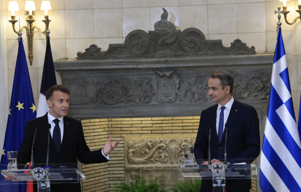 Πραγματοποιήθηκαν οι κοινές δηλώσεις του πρωθυπουργού Κυριάκου Μητσοτάκη με τον Γάλλο πρόεδρο Εμανουέλ Μακρόν στο Μέγαρο Μαξίμου.