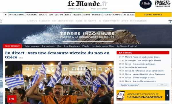 Το αίσθημα της έκπληξης για την μεγάλη διαφορά ανάμεσα στο «όχι» και στο «ναι» είναι διάχυτο στους εκατοντάδες ξένους απεσταλμένους δημοσιογράφους, ανταποκριτές, φωτογράφους, και εκπροσώπους τηλεοπτικών συνεργείων που έχουν κατακλύσει ασφυκτικά μέσα και έξω το Ζάππειο.