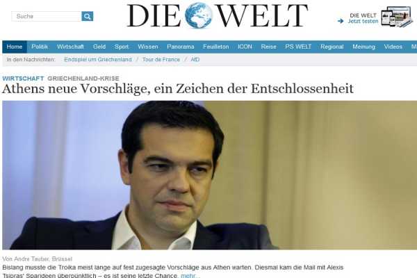 Η οικονομική εφημερίδα Handelsblatt σημειώνει: «Η Αθήνα παραδίδει και ζητεί 53,5 δισεκ. ευρώ». Η Αθήνα συγκλίνει με τις προτάσεις των πιστωτών σε πολλά σημεία, όπως η φορολογία και οι συντάξεις, τονίζει η εφημερίδα. Σε αντάλλαγμα ο Αλέξης Τσίπρας ζητεί νέα βοήθεια. Αρκούν αυτά για μια συμφωνία, διερωτάται η Handelsblatt.