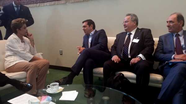 O πρωθυπουργός, πριν από την έναρξη των εργασιών της Γενικής Συνέλευσης, είχε ολιγόλεπτη συνάντηση με τον Κουβανό Πρόεδρο Ραούλ Κάστρο (φωτογραφία). Ο Ραούλ Κάστρο δήλωσε στον Αλέξη Τσίπρα ότι παρακολουθεί στενά και με ιδιαίτερο ενδιαφέρον τις εξελίξεις στην Ελλάδα και τον προσκάλεσε να επισκεφθεί την Κούβα όποτε το επιθυμεί.