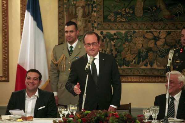 «Το πρώτο μήνυμα που επιθυμώ να διαβιβάσω στο σύνολο του ελληνικού λαού, είναι ότι η δική του επιλογή ευθύνης και θάρρους ώστε να παραμείνει στην Ευρωζώνη, θα του επιτρέψει να ξαναβρεθεί στην τροχιά της ανάπτυξης, χάρη στην αποφασιστική δράση της κυβέρνησής του», ανέφερε ο κ. Ολάντ.