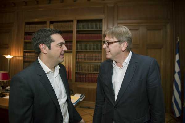 Στο προσφυγικό επικεντρώθηκε η συνάντηση Τσίπρα - Φερχόφστατ Στο προσφυγικό ζήτημα επικεντρώθηκε η συζήτηση που είχαν ο Αλέξης Τσίπρας και ο πρόεδρος της ομάδας της Συμμαχίας Φιλελεύθερων και Δημοκρατών στο Ευρωπαϊκό Κοινοβούλιο, Γκι Φερχόφστατ, τον οποίο υποδέχτηκε ο πρωθυπουργός το μεσημέρι, στο γραφείο του στο Μέγαρο Μαξίμου.