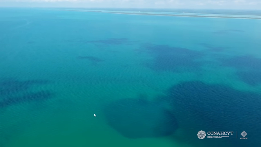 Κάτω από την ήρεμη επιφάνεια του νερού στον Κόλπο Chetumal, στο νότιο Μεξικό, ο πυθμένας ξαφνικά βυθίζεται σε ένα σχεδόν αβυσσαλέο κενό.
