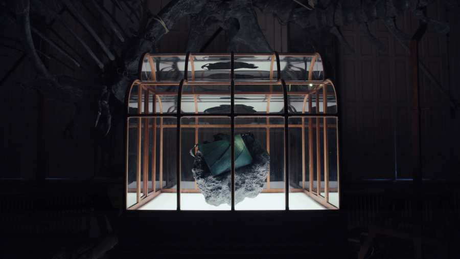 Η τσάντα, σε πετρόλ απόχρωση, εκτίθεται στο Μουσείο Τέχνης και Ζώων στο Άμστερνταμ, τοποθετημένη πάνω σε βράχο και κάτω από ομοίωμα δεινόσαυρου, ενώ πρόκειται να δημοπρατηθεί τον επόμενο μήνα με τιμή εκκίνησης που ξεπερνά τις 500.000 δολάρια.