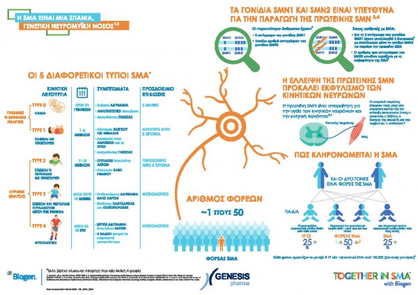 Η Νωτιαία Μυϊκή Ατροφία (SMA), είναι μια κληρονομική, σπάνια νόσος, που χαρακτηρίζεται από απώλεια των κινητικών νευρώνων στο νωτιαίο μυελό και το κατώτερο εγκεφαλικό στέλεχος, με αποτέλεσμα τη σοβαρή και επιδεινούμενη μυϊκή ατροφία και αδυναμία, ανέφερε η Ροζέ Πονς, επίκουρη καθηγήτρια Παιδιατρικής Νευρολογίας του ΕΚΠΑ, υπεύθυνη της Ειδικής Μονάδας Παιδονευρολογίας, στην Α' πανεπιστημιακή παιδιατρική κλινική, του Νοσοκομείου Παίδων «Αγία Σοφία». Σε βάθος χρόνου, τα άτομα με τον πιο σοβαρό τύπο SMA μπορεί να παραλύσουν και να αντιμετωπίζουν δυσκολίες στη διεκπεραίωση των βασικών λειτουργιών της επιβίωσης, όπως η αναπνοή και η κατάποση.