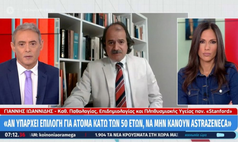 Όταν, του είπε η παρουσιάστρια της εκπομπής, Ανθή Βούλγαρη, να εξηγήσει, λέγοντας «θα λέγατε οι κάτω των 50 να επιλέξουν κάποιο άλλο εμβόλιο;» κι αυτός απάντησε «ακριβώς».