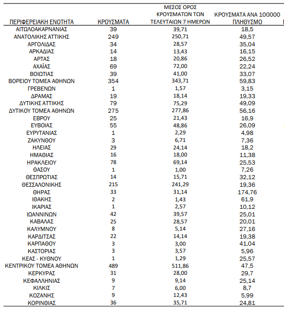 Συγκεκριμένα, στην Αττική 1.974 καταγράφηκαν νέες μολύνσεις και στη Θεσσαλονίκη 215 επί συνόλου 3.190 νέων κρουσμάτων και 375 πιθανών νέων επαναλοιμώξεων.