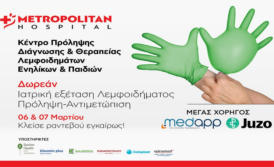 Οι επισκέψεις των ενδιαφερομένων και η εξέταση θα λάβουν χώρο στα ειδικά γραφεία του Κέντρου Πρόληψης Διάγνωσης και θεραπείας Λεμφοιδημάτων-Λεμφικών παθήσεων Ενηλίκων και Παιδιών στο Metropolitan Hospital στην οδό Ελευθερίου Βενιζέλου 6 στον 1ο όροφο.
