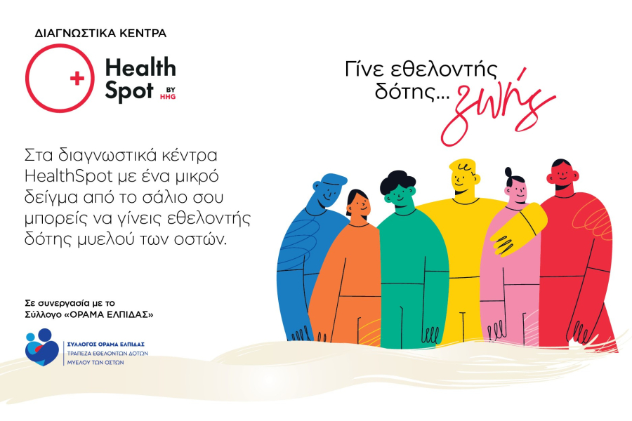 Τα HealthSpot, με τη στήριξη του Hellenic Healthcare Group (HHG), του κορυφαίου παρόχου υπηρεσιών υγείας στη χώρα μας, στοχεύουν να συνεισφέρουν στις ανάγκες μεταμόσχευσης μυελού των οστών από συμβατούς δότες, σε ασθενείς, παιδιά και ενήλικες στην Ελλάδα αλλά και στο εξωτερικό, και να ευαισθητοποιήσουν το κοινό σχετικά με το εξαιρετικά σημαντικό ζήτημα της δωρεάς μυελού των οστών.