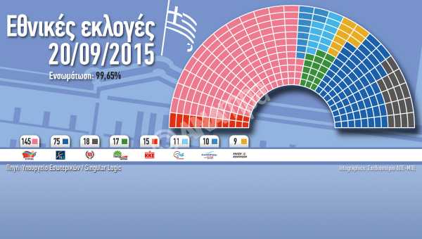 Οι έδρες σύμφωνα με τα σχεδόν τελικά αποτελέσματα των εκλογών 2015: