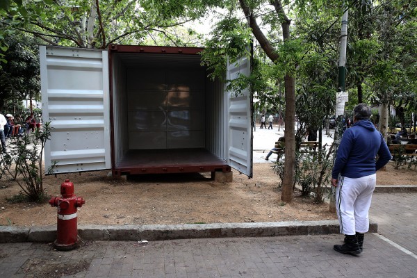 Πρόκειται για το κοντέινερ που τοποθετήθηκε στις 8 Απριλίου 2017 στα Εξάρχεια από τα μέλη της «Συνέλευσης για την επανοικειοποίηση των Εξαρχείων», τα οποία το χαρακτηρίζουν ως «πολιτικό περίπτερο». Το κοντέινερ έμεινε κλειστό όλες τις προηγούμενες ημέρες και αναμένεται να λειτουργήσει από σήμερα το απόγευμα.