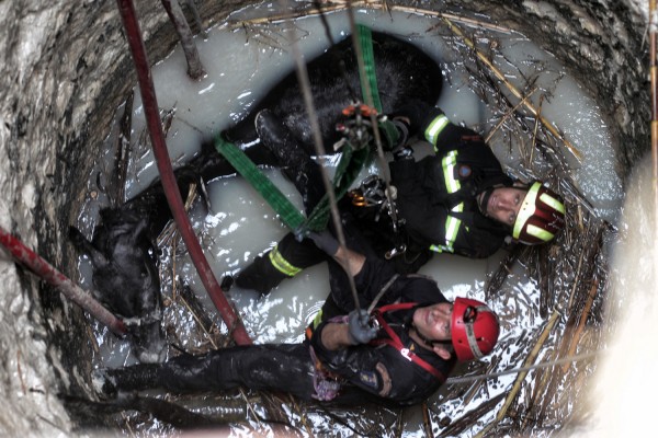 Άνδρες της 1ης Ορειβατικής ΕΜΑΚ απεγκλωβίζουν άλογο που έχει πέσει σε πηγάδι, στην περιοχή Κρητικά της Αρχαίας Κορίνθου.
