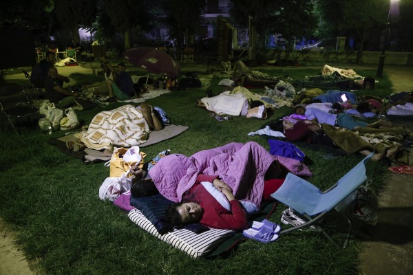 Σε πλατείες, μέσα σε αυτοκίνητα, πάνω σε ξαπλώστρες ακόμα και σε στρώματα θαλάσσης οι κάτοικοι του νησιού κοιμήθηκαν σε όποιους εξωτερικούς χώρους ήταν διαθέσιμοι. Σε γενικές γραμμές όμως, οι περισσότεροι κάτοικοι και επισκέπτες παρέμειναν στα σπίτια τους και στα ξενοδοχεία, περιμένοντας να καταλαγιάσει η δραστηριότητα του Εγκέλαδου.