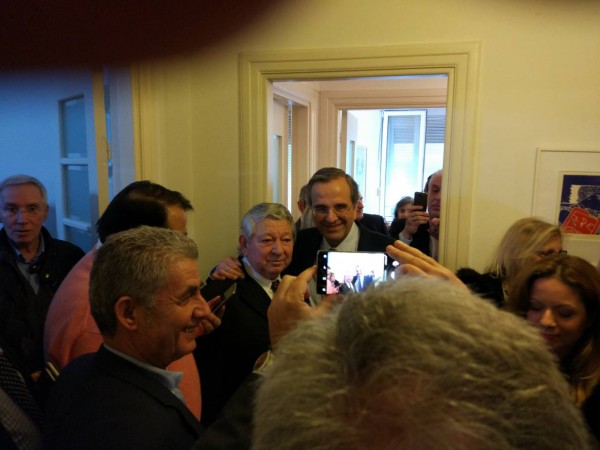 Ο κ. Σαμαράς ιδιαίτερα ευθιάθετος και χαμογελαστός μιλησε με όλο τον κόσμο που βρέθηκε εκεί ενώ το θέμα που μονοπώλησε ήταν το Σκοπιανό. Αφορμή για το ...άνοιγμα της συζήτησης ήταν και η παρουσία εκπροσώπων των Παμμακεδονικών Ενώσεων. Εκείνο που τόνισαν είναι ότι η χώρας μας δεν μπορεί να δεχτεί όνομα στο οποίο να περιέχεται ο όρος Μακεδονία. Μάλιστα κατά την έξοδό τους οι εκπρόσωποι των Παμμακεδονικών Ενώσεων δήλωσαν «Είμαστε ικανοποιημένοι, η θέση του ήταν ξεκάθαρη».
