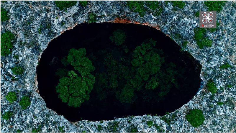 Η υγρασία που παγιδεύεται εκεί και η ελάχιστη ηλιοφάνεια που μπαίνει στο βάραθρο τροφοδοτούν τα μοναδικά στην περιοχή δέντρα ώστε να έχουν ευδοκιμήσει και να ανταγωνίζονται ποιο θα μπορέσει να βρει πρώτο πάνω από την επιφάνεια του εδάφους. Σίγουρα αξίζει να μελετηθεί περαιτέρω από τους σπηλαιολόγους ώστε να χαρτογραφηθεί και να αποκαλύψει τα καλά κρυμμένα μυστικά της.