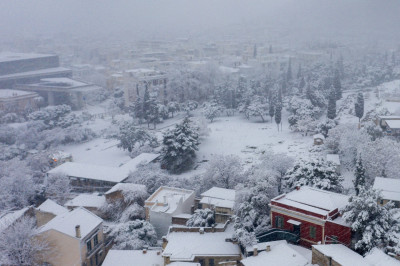Στα λευκά σχεδόν το σύνολο της Μακεδονίας. Σφοδρή χιονόπτωση σε Φλώρινα, Πτολεμαΐδα ενώ η κακοκαιρία Μπάρμπαρα και ο χιονιάς κατηφορίζει στην Αττική.