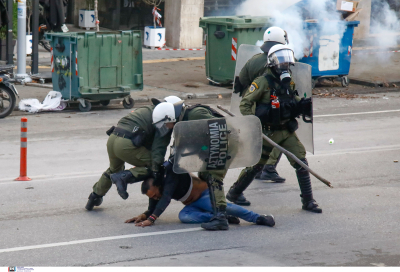 Η σφαλιάρα που έριξε αστυνομικός των ΜΑΤ σε συνάδελφό του.