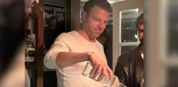 Ο Στέφανος Κασσελάκης κερνάει σφηνάκια σε μπαρ στις Σπέτσες
