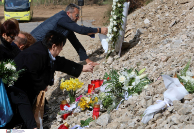 Τρισάγιο σε βαριά ατμόσφαιρα στα Τέμπη για τα 57 θύματα της σιδηροδρομικής τραγωδίας