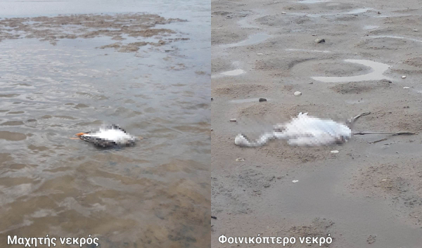 Μπροστά σε ένα λυπηρό θέαμα βρέθηκαν δύο επισκέπτες προστατευόμενης περιοχής Natura 2000, στις Αλυκές Μεσολογγίου, εντοπίζοντας νεκρά δύο σπάνια είδη ορνιθοπανίδας: ένα φλαμίνγκο και έναν μαχητή.